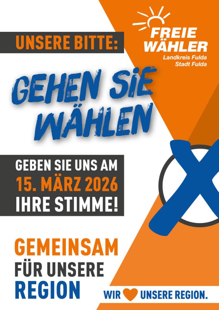 Kommunalwahl 2026Start / Kommunalwahl 2026 Aktuelle Pressemitteilungen: Januar 2026 Februar 2026 März 2026 Jetzt Briefwahl nutzen und FREIE WÄHLER wählen: Unser Ziel für die Stadt Fulda: Unser Wahlprogramm 2026: